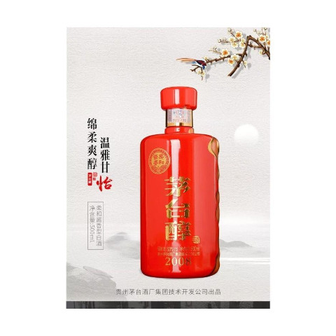 茅台醇2008產自貴州茅台酒廠技術開發公司,屬柔和醬香型白酒53度。